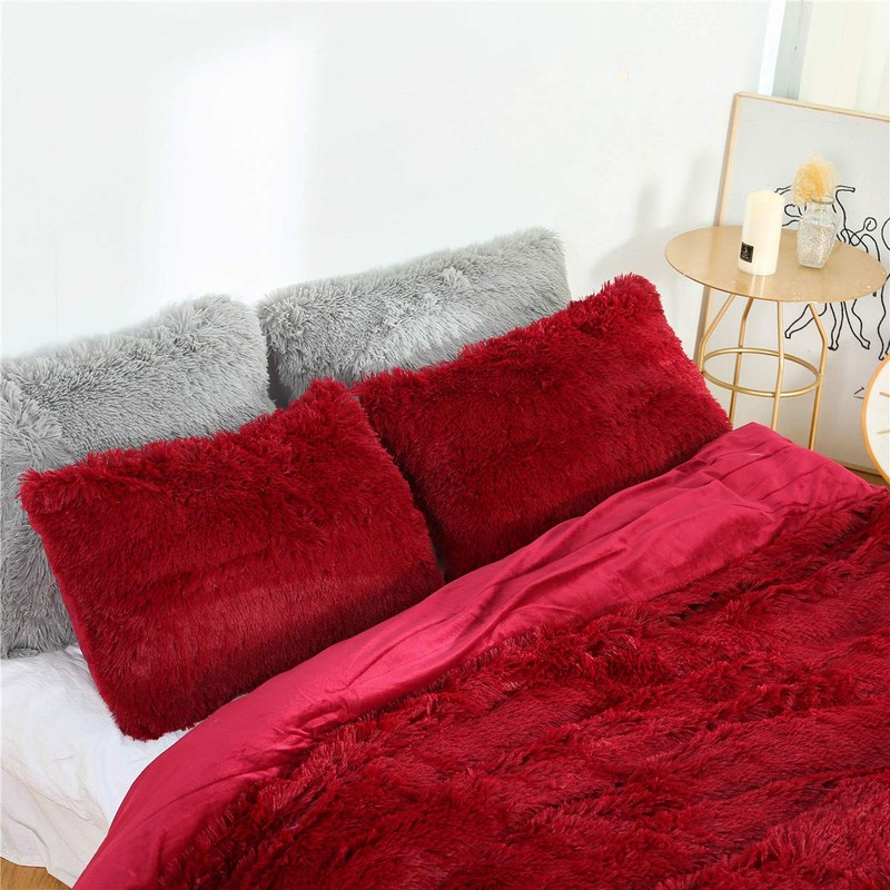 Tenghe Solid Plush Standard/Queen Pillowcase 2 Pack Super Soft Fluffy Faux Fur Shaggy Pillow Cases/Covers Decorative Throw Pillow Shams with Zipper Closure (Standard/Queen-Pillowcases Only, Burgundy)