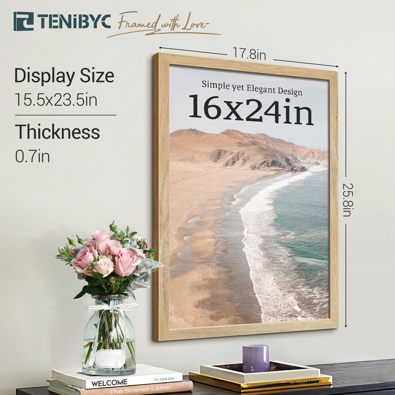 TENIBYC 16x24 Poster Frame Set - 4 Pack, Natural Solid Wood Picture Frame, Elegant Wood Grain, Wall Gallery Photo Frame