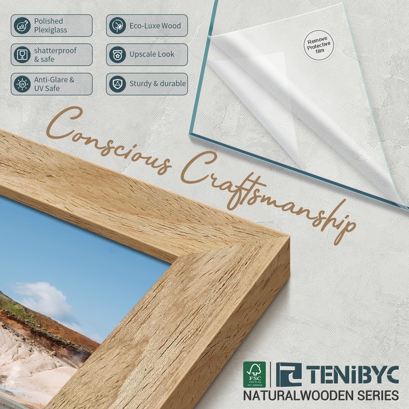 - Artistic Allure: The TENIBYC natural wood grain frame, a work of our dedicated designers. Its minimalist design and premium quality can complement any decor, highlighting your cherished memories.