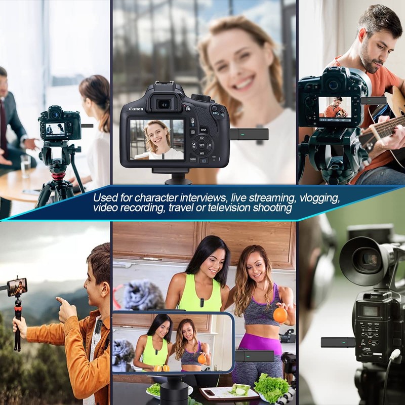 - Free yourself from messy cables: Designed for YouTube/Facebook live streams, TikTok creators, vloggers, bloggers, YouTubers, podcasters, interviewers and other video recording lovers. Say goodbye to messy cables and poor noise cancellation from now on. Easy to connect and cover 60 ft for signal, 0.009s delay in transmission, clear recording or video recording from a greater distance.