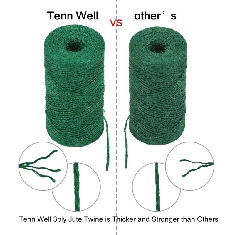 Tenn Well Jute Twine String, 328 Feet x 2 Rolls Thick Jute String Rope for Gardening, Bundling, Gift Wrapping, Decoration, DIY Crafts (Green, Red)