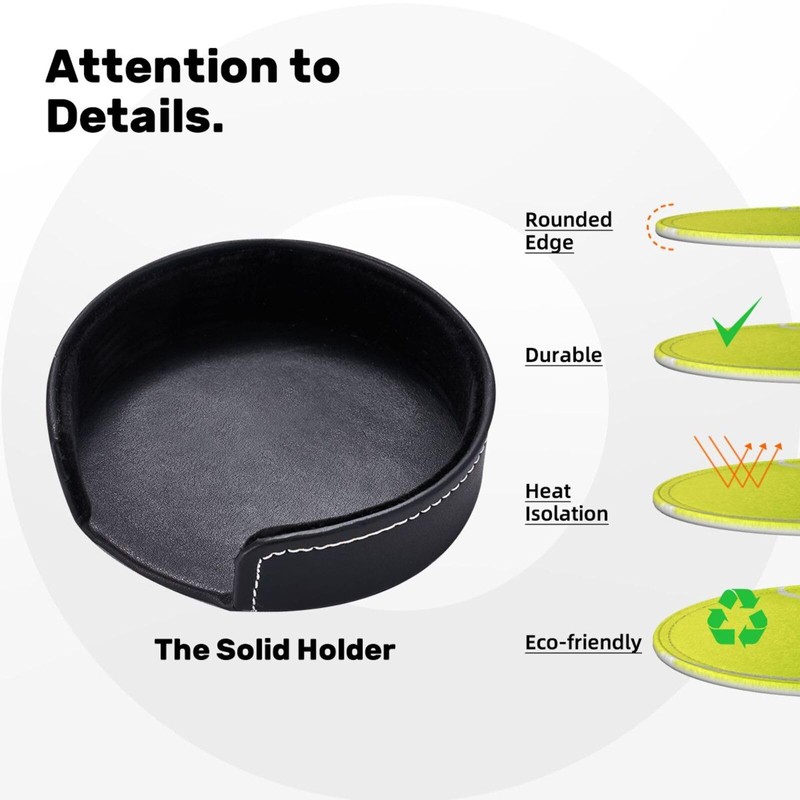 - Material: As High Quality Coasters Is Made Of High Quality Pu Leather For Better Heat Insulation And More Sturdy. Lightweight, Non Slip, Water Proof.