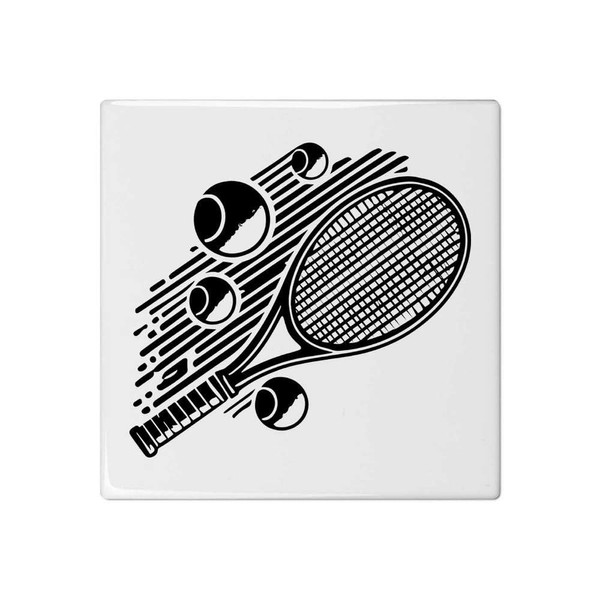'Tennis Racket & Balls' 108mm Square Ceramic Tile (TD00027915)