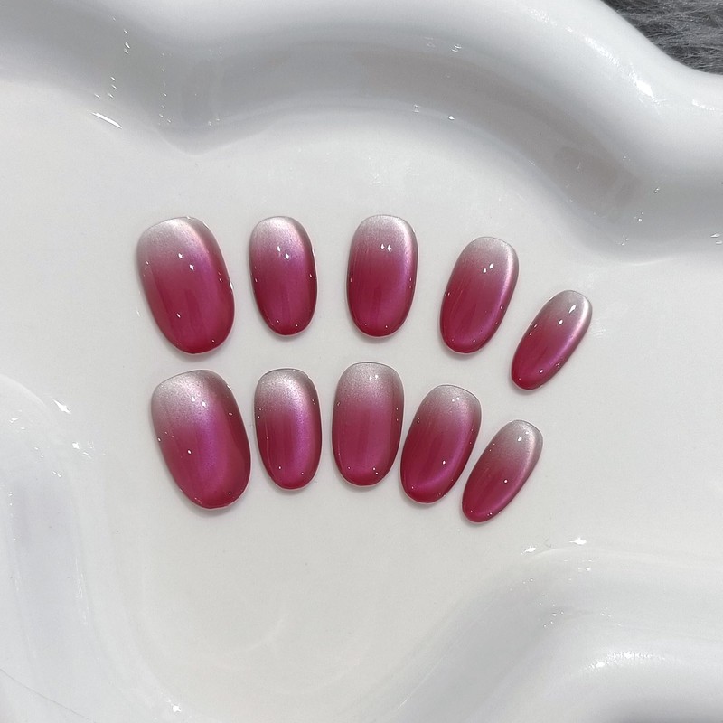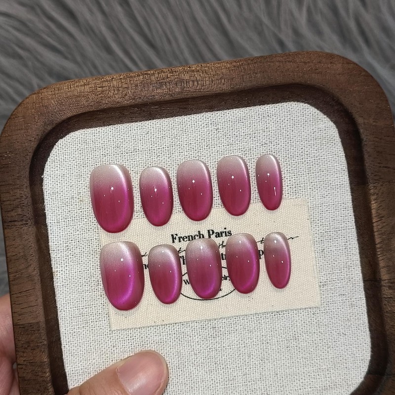 TENPAL Press On Nails 10 Pcs with Tools Kit,Handmade Peach Tea Rose Gradient Cat Eye False Nails,Short Oval Icy Jelly Minimalist Glow Glue on Nails,Reusable Fake Nails for Bridal Shower Vacation(M)