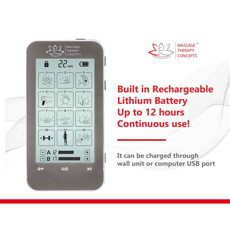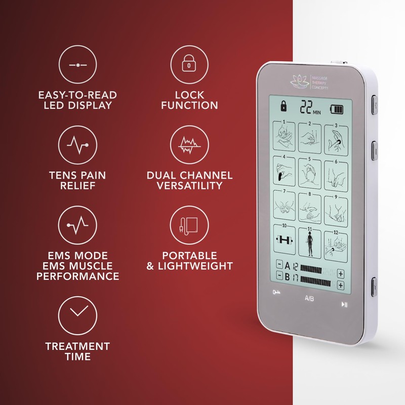 Massage Therapy Concepts TENS Unit Muscle Stimulator - Non-Invasive EMS Therapy Machine for Neck, Shoulder & Back Pain Relief, Sciatica, Arthritis - Safe & Portable with 12 Modes & 20 Intensity Levels