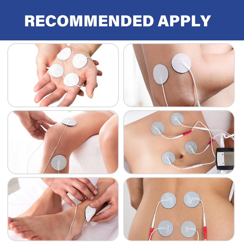 - WHAT YOU GET: 40PCS round tens unit pads, 1.25inches diameter. NOTE: Clean and dry the application areas before using. Remember you should only apply electrodes to unbroken skin