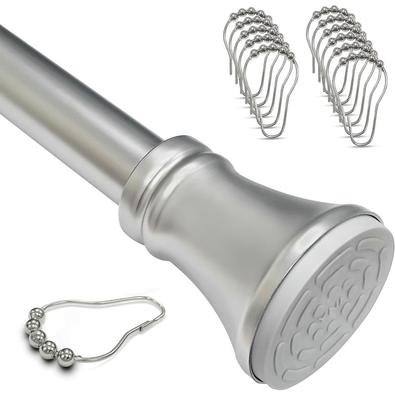 Tension Rod, Never Rust, Non-Slip, No Drill Short Shower Curtain Rod 36-52 Inches with 12 Shower Curtain Rings, Adjustable Shower Rod for Window & Door, Matte Nickel, Size:36-52"(3-4.3ft)