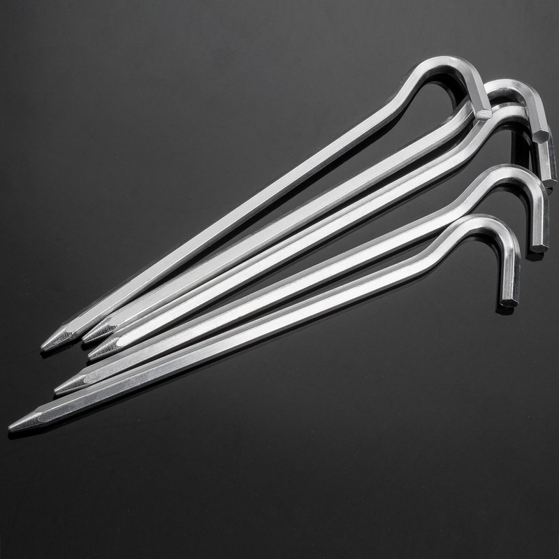 - ✔SHAPE : Tent peg stake is a hexagon rod spike, with a hook on the top end.