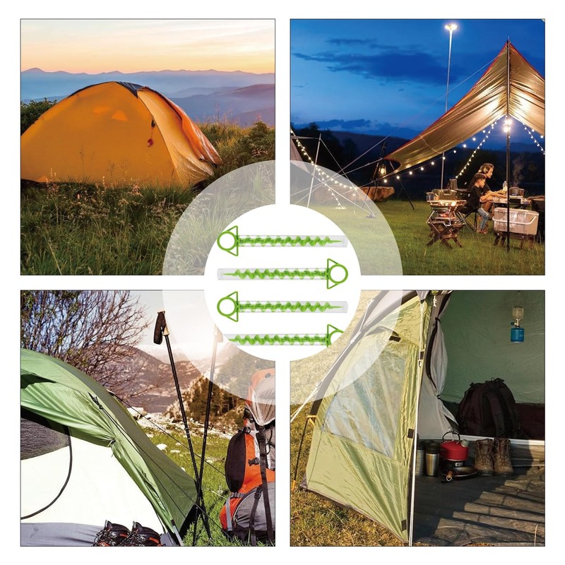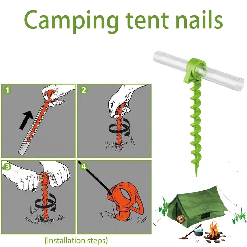 - High-quality spiral tent pegs: made of high-strength plastic, abrasion-resistant, corrosion-resistant, reusable, lightweight and space-saving, the perfect choice for camping trips