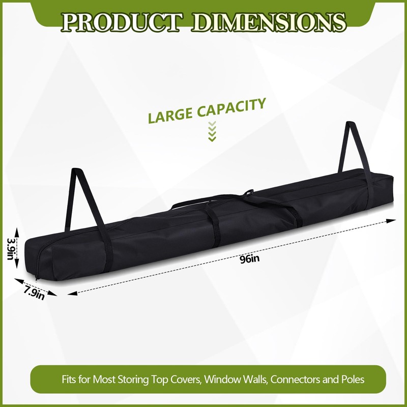 - Generous Size for Most Tent Poles: sized at 96 x 7.9 x 3.9 inches/ 243.84 x 20.07 x 9.91 cm, this tent pole bag provides ample space to store any extra long poles; With this large bag, you no longer have to worry about the inconvenience of carrying multiple bags; It is suitable for storing top covers, window walls, connectors and poles, ensuring a hassle free and efficient storage solution