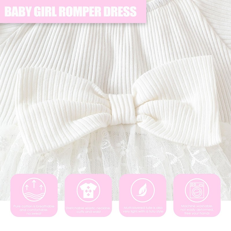 - Newborn Girl Dress Material: Crafted with a soft and breathable ribbed cotton lining, lace is made of polyester, with a tulle design on the inner. This romper dress ensures your baby stays cool and comfortable all day long. Perfect for sensitive baby skin, it's gentle, baby girl newborn dresses ideal for all day comfort