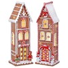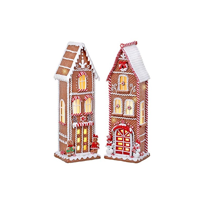 TenWaterloo Set of 2 Large Lighted Gingerbread Peppermint Candy House with Timers in Clay Dough Resin with Frosted Snow Look, Battery Operated, 17 Inches High Each