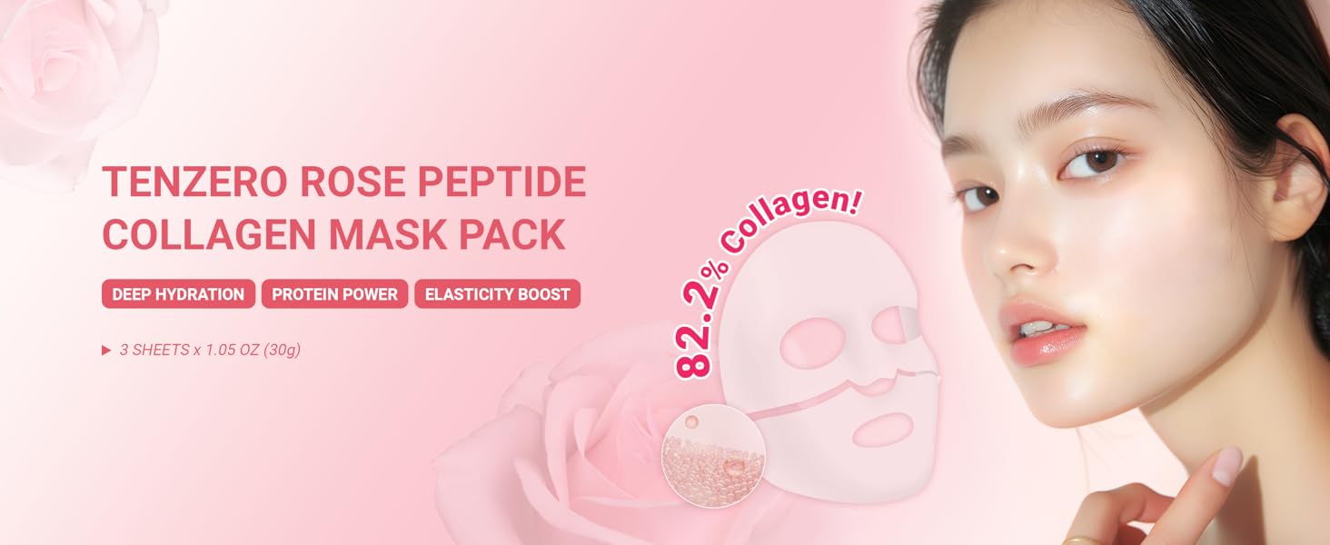 - ELEVATE ELASTICITY & FIRMNESS: Designed to enhance skin elasticity and firmness, TENZERO Rose Peptide Collagen Mask works to restore a lifted, youthful appearance. It helps improve skin texture and promotes a firmer, more resilient feel with each use.