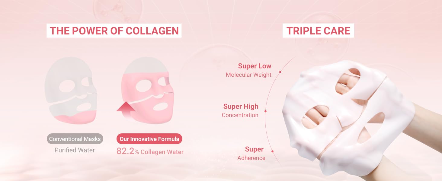 - DEEP HYDRATION FOR RADIANT SKIN: This collagen mask delivers deep moisture, keeping your skin intensely hydrated and glowing throughout the day. Perfect for dry or dehydrated skin, it leaves your complexion smooth, plump, and revitalized.
