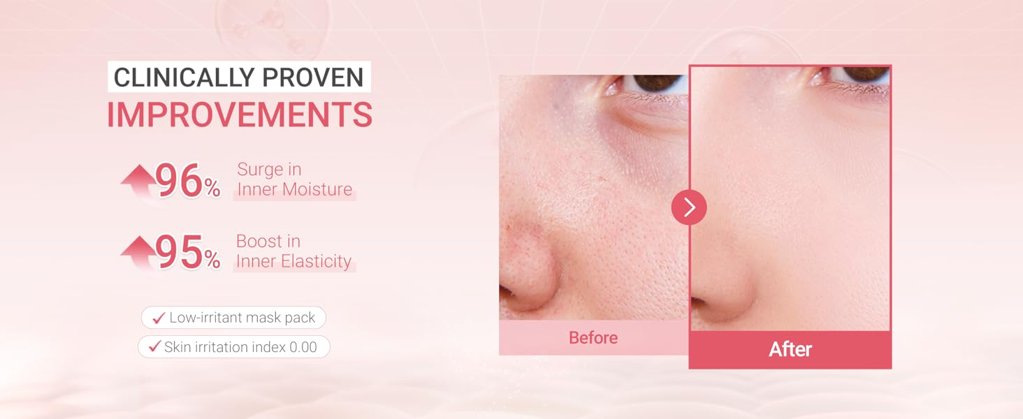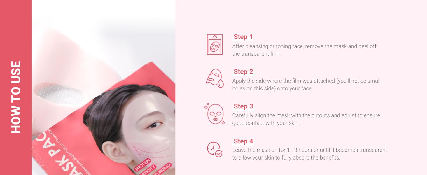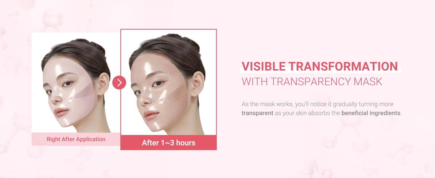 - PREMIUM INGREDIENTS FOR NOURISHMENT: Combining the power of Low Collagen and Rose Peptides, this mask provides essential nutrients that soothe and renew the skin. These ingredients work synergistically to support skin regeneration and a healthy, dewy glow.
