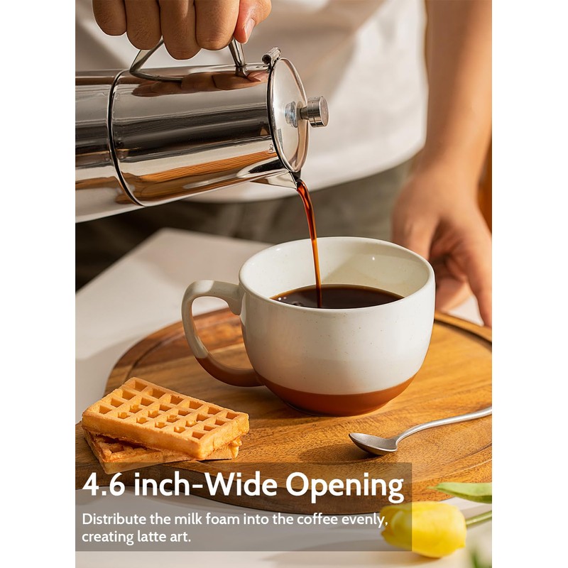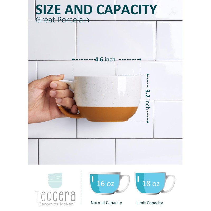 - Wide Mugs, A Favorite of Latte Lovers - Normal coffee mugs are not big enough to make the perfect latte. Teocera white mugs have a wide opening(4.6 inches) to distribute the milk foam into the coffee evenly, creating latte art. Everyone has a chance to be a barista.
