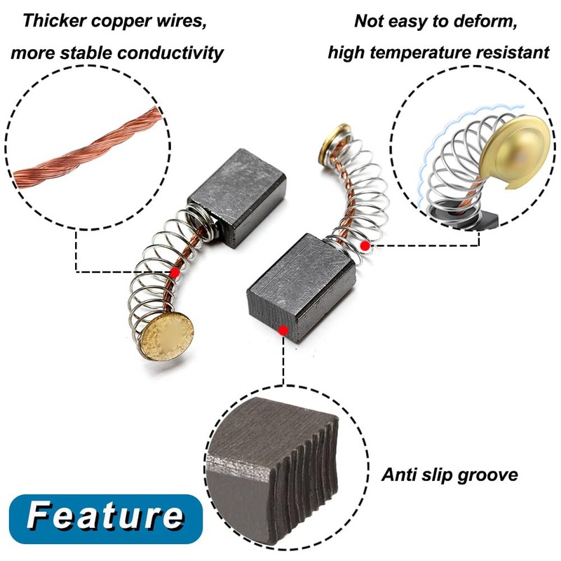 • Quality material: Electric motor carbon brushes are made of high quality graphite and copper, quenched at high temperature, with corrosion resistance, wear resistance and more stable conductivity.