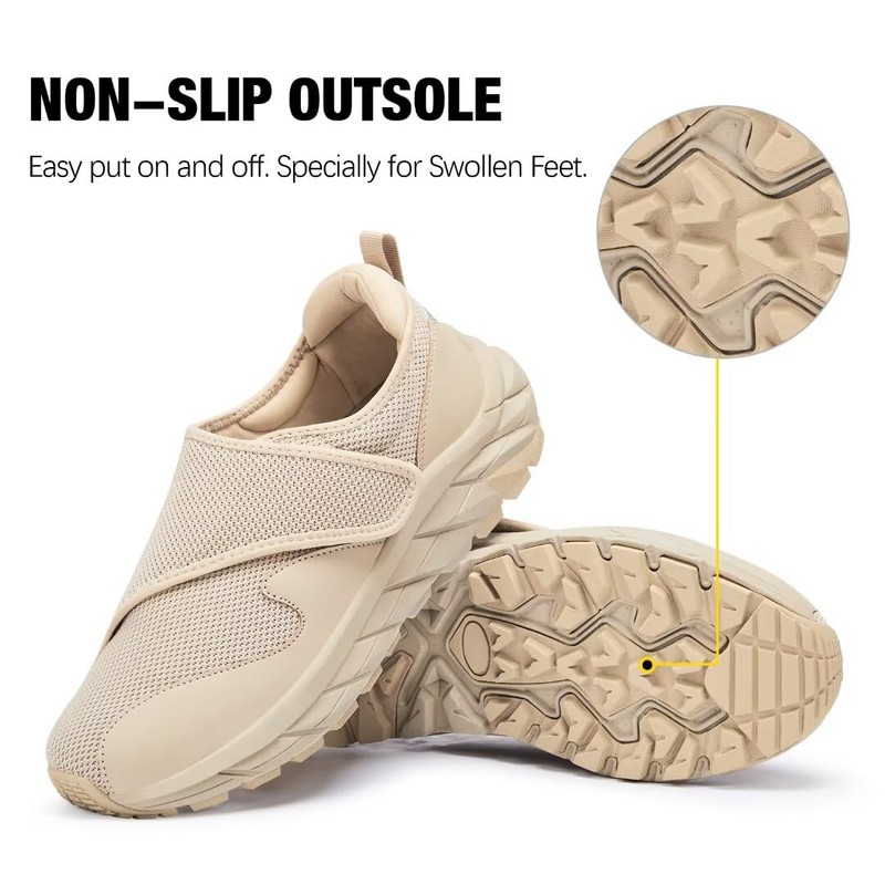 TEOHRW Men Diabetic Shoes Wide Width Shoes with Adjustable Closure for Swollen Feet Non-Slip Air Cushion Bottom Sneakers Khaki