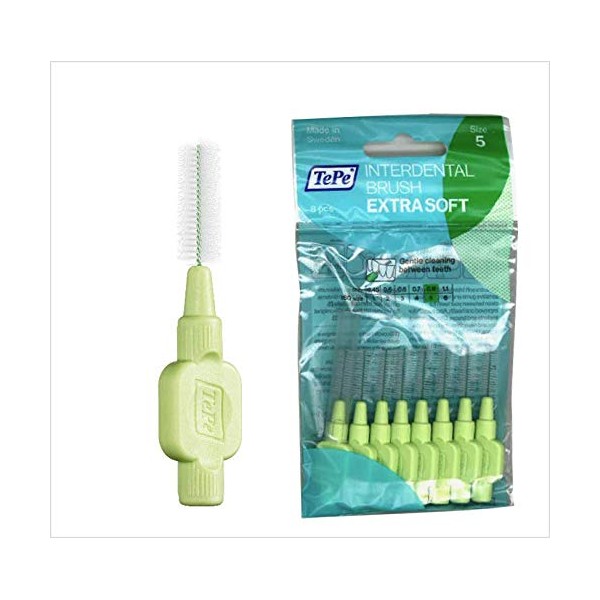Tepe Interdental Brush, Extra Soft (Extra Soft), 0.03 inches (0.8 mm), 5 Bags