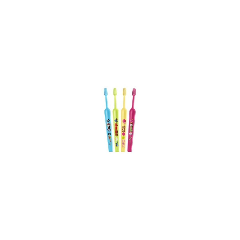 TePe Mini is a toothbrush recommended for children from 0 to 3 or 4 years of age.It has a small,tapered brush head and soft or extra soft filaments.The toothbrush handle offers a stable and convenient grip for children and adults alike. Each TePe Mini has a small, tapered brush head and extra soft filaments, which makes it soft enough and suitable right from the first tooth.TePe Mini is available in bright colours and pretty prints.