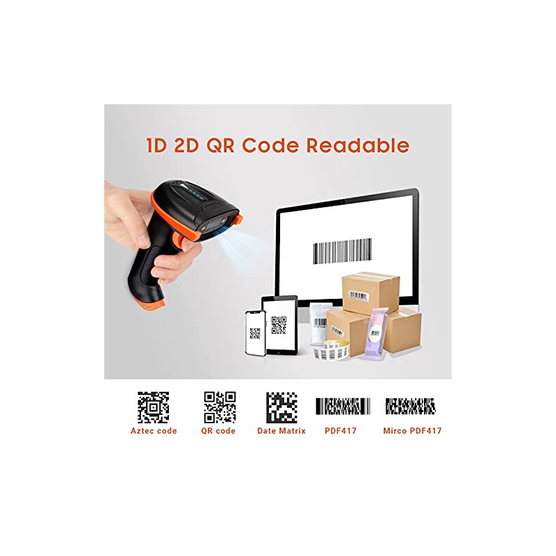 - 【Anti-Shock Silicone】 The orange anti-shock silicone protective cover can avoid scratches and friction while falling from the height of 6.56 feet. IP54 technology protects the wireless barcode scanner from dust.