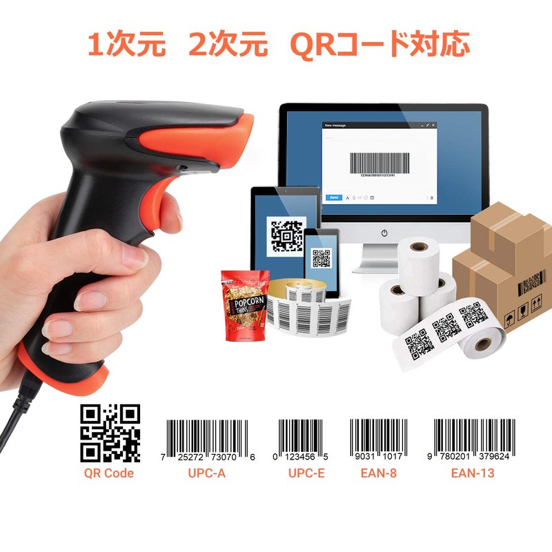 - [Uses CMOS technology] ^&^[Vibration Function] - Not only can it be used to read 1D barcodes, but also 2D QR codes. You can also read barcodes displayed on smartphones, tablets and PC screens, and even damaged barcodes such as scuffs and dirt printed on labels. (Equipped with Vibration Function) Even if the buzzer sound is turned off in the office or library, it can be read and confirmed by vibrations even in places where noise cannot be seen by factories, etc