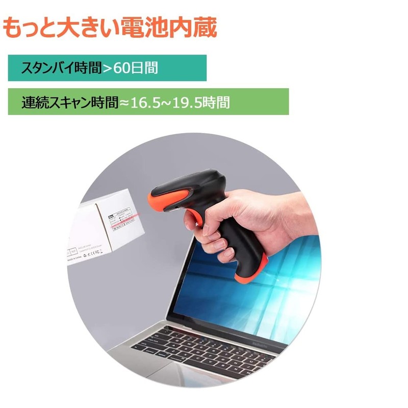 【Over 50,000 barcodes can be readed】---The Tera wireless scanner has a built-in 2,000 mAh which can read about 50,000 barcodes. Estimated working time is 16.5-19.5 hours, charging time is 2-3 hours, standby time can reach up to 60 days.