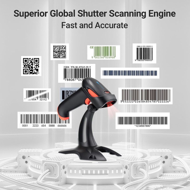 - 【Patented Battery Level Indicator】No more unexpected power interruptions during critical tasks. Our innovative device keeps you informed with real-time battery updates. With the built-in battery indicator light, you can easily monitor your remaining charge, allowing for efficient usage planning and avoiding unexpected downtime.【Package Includes】Barcode Scanner x1, Barcode Scanner Stand x1, USB Cable x1, Dongle x1, User Manual x1