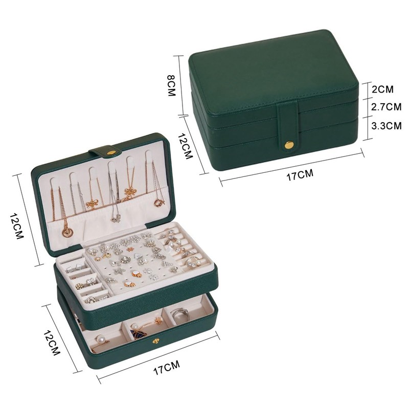 - 📋【Travel Jewellery Box】 This jewellery organizer is very easy to carry when traveling, dating and business trips. It measures around 6.8* 4.8* 3.3 Inches or 17.3*12.4*8.5cm (L*W*H) and weighs around 420g or 1 Pounds.