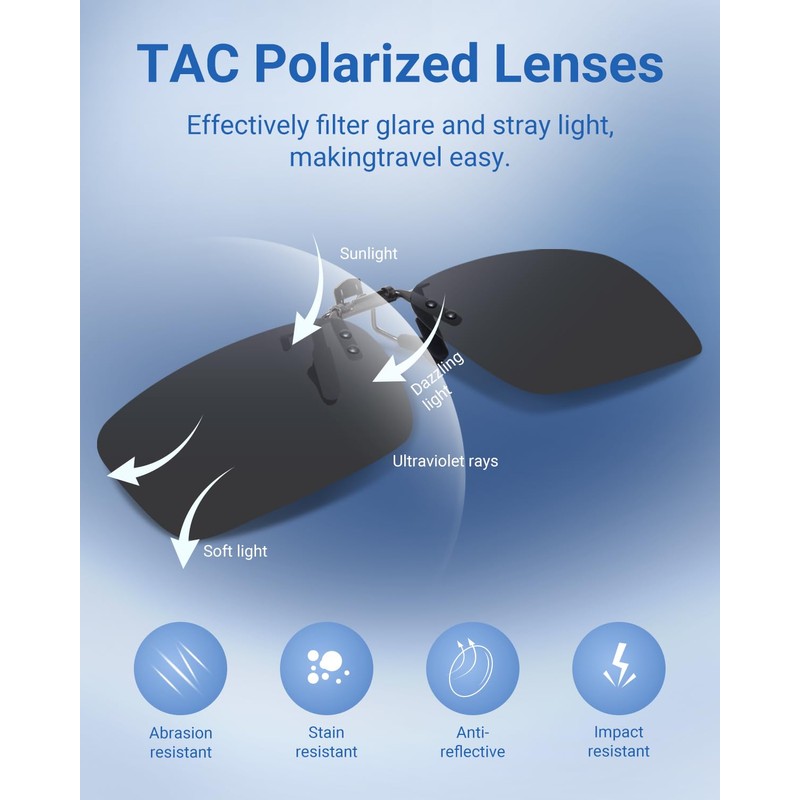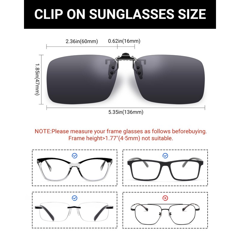 - ❤ANTI-GLARE- this sunglasses clip-on can block bright lights, headlights and dazzling sunlight to protect your safety and eyesight, relieve eye fatigue and to make your vision more clear and driving safer.