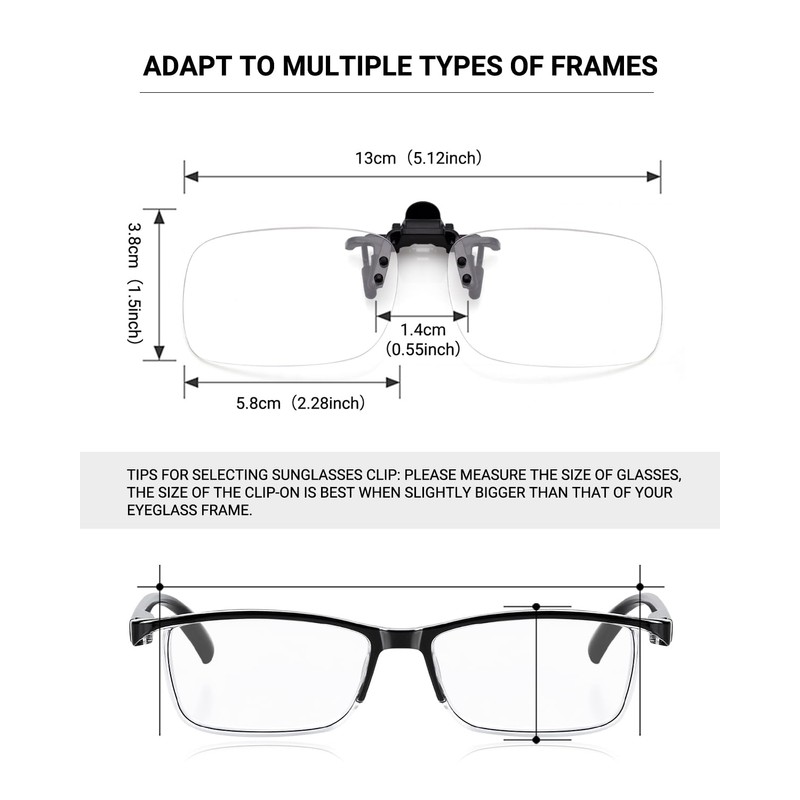 - ☀Suitable for most glasses - This clip-on is suitable for most glasses on the market as it fits various types of frames - full frame, half-frame, frame-less, you name it.