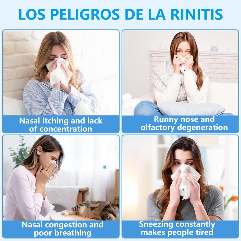 - Nota: La terapia con luz roja puede aliviar algunos síntomas de la rinitis, pero no puede curarla por completo. Si el paciente desarrolla síntomas de malestar durante el tratamiento, como eritema cutáneo, picor, etc., deberá suspender su uso inmediatamente.