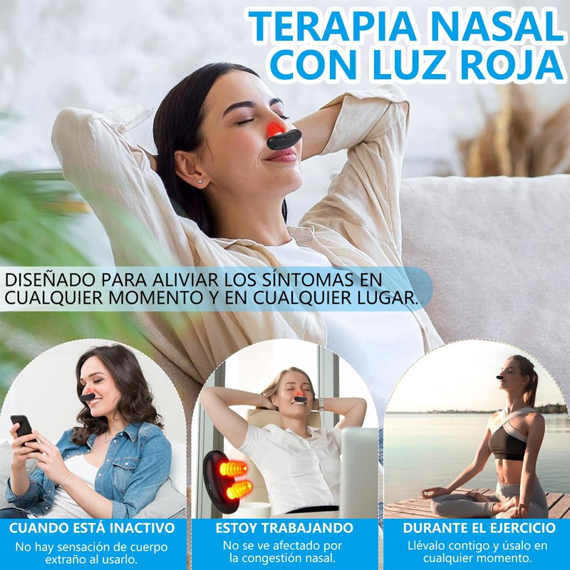 Terapia Nasal con Luz Roja, Dispositivo de Terapia Nasal Laser, Instrumento de Terapia para Respirar Mejor, sin Medicamentos,Esteriliza, Reduce la Inflamación y Promueve la Circulación Sanguínea.