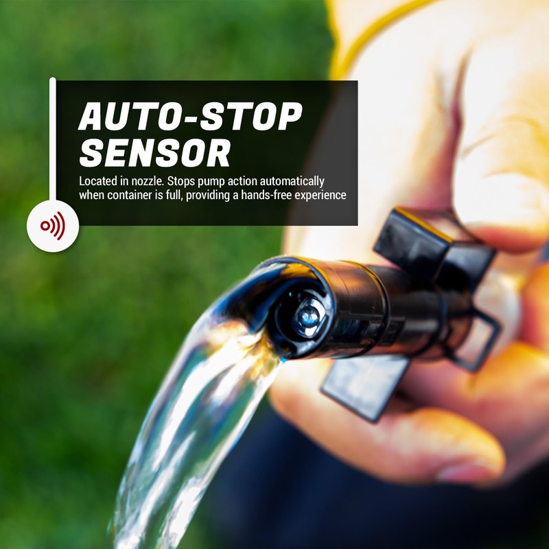 - LEAK PROTECTION | Our Pump was Engineered to be prevent any fuel Loss by Stopping your precious fuel by sensing that container is almost full & automatically stopping the flow with built-in Auto Stop sensor, patented design will force liquid back down the suction pipe | Built-in hook for easy storage in the garage or shop