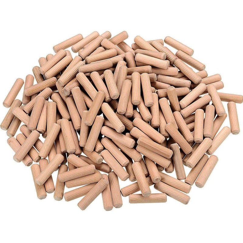 TERF® 200 Pcs Wooden Dowel Pins 6mm X 30mm Wood Dowels Solid Hard Wood Dried Fluted Beveled Hardwood Rods Furniture for Professional Carpenters DIY and Craft Projects