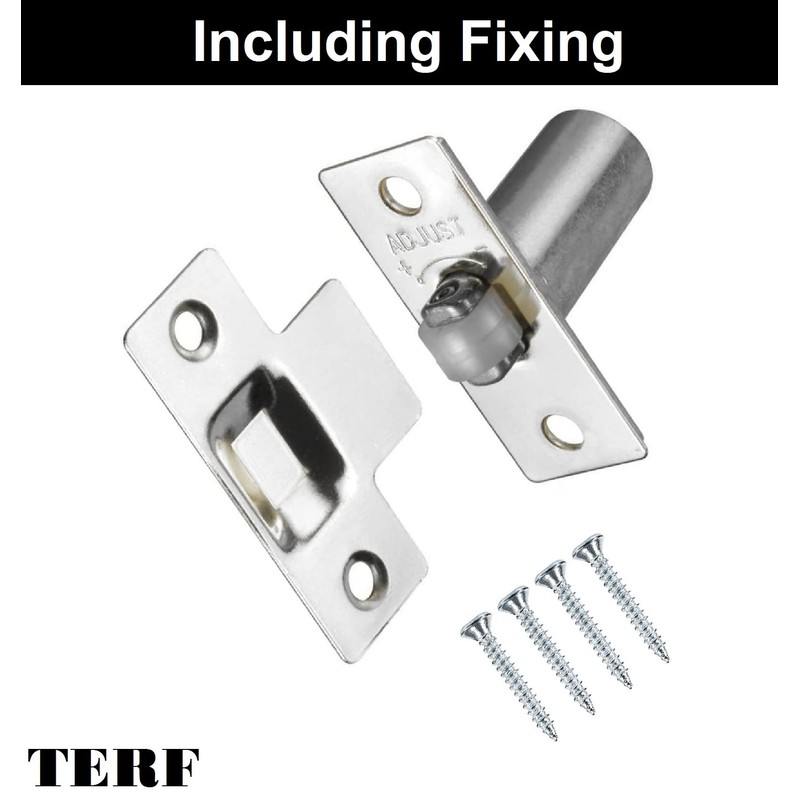 TERF® Adjustable Roller Catch Polished Nickel Roller Ball Door Latch Door Closer Ideal Internal Door Catch for Doors Cupboards Cabinets and Wardrobes including Fixing Screw - Pack of 1