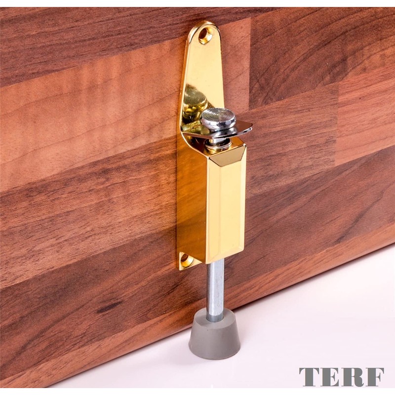 TERF® Heavy Duty Kick Down Door Lock Stopper Holder Spring Loaded Adjustable Doorstop Polished Brass Foot Spring Loaded Door Retainer with Extra-Strong Including Fixing Screw - Pack of 2