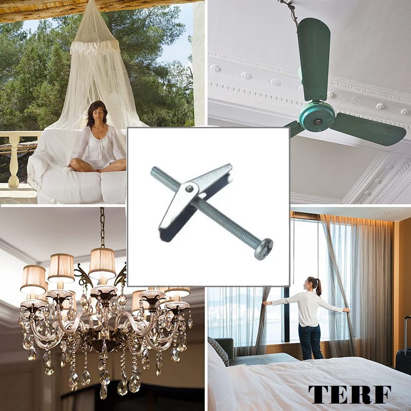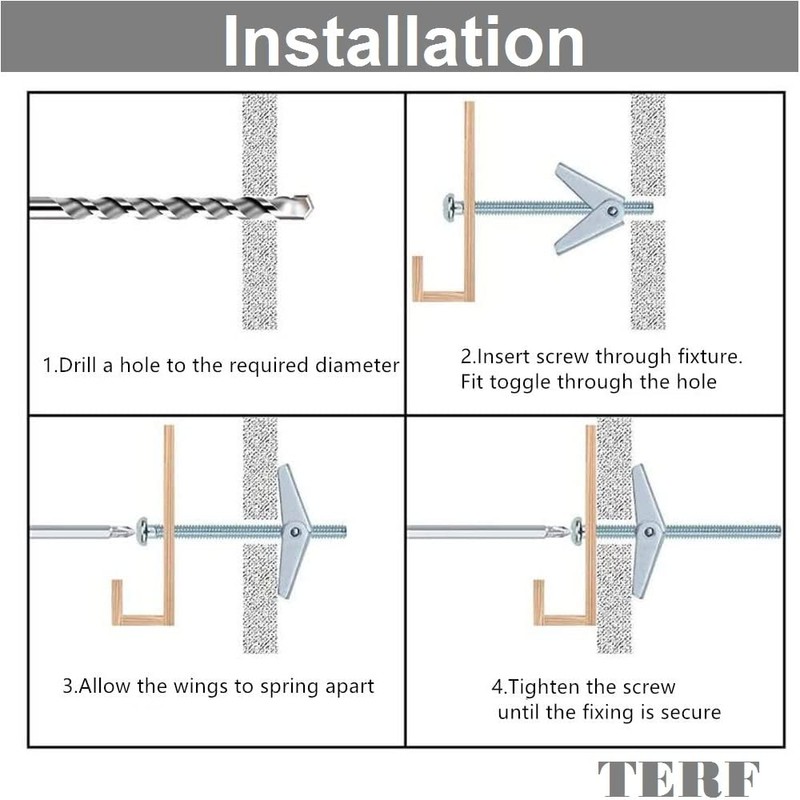 - Wide Applications: This wing spring toggle bolt is mainly used for plasterboard/stud wall, which can fix TV, floating shelves, heavy mirrors, wall lights, picture frames, curtain pole, lamps, etc.