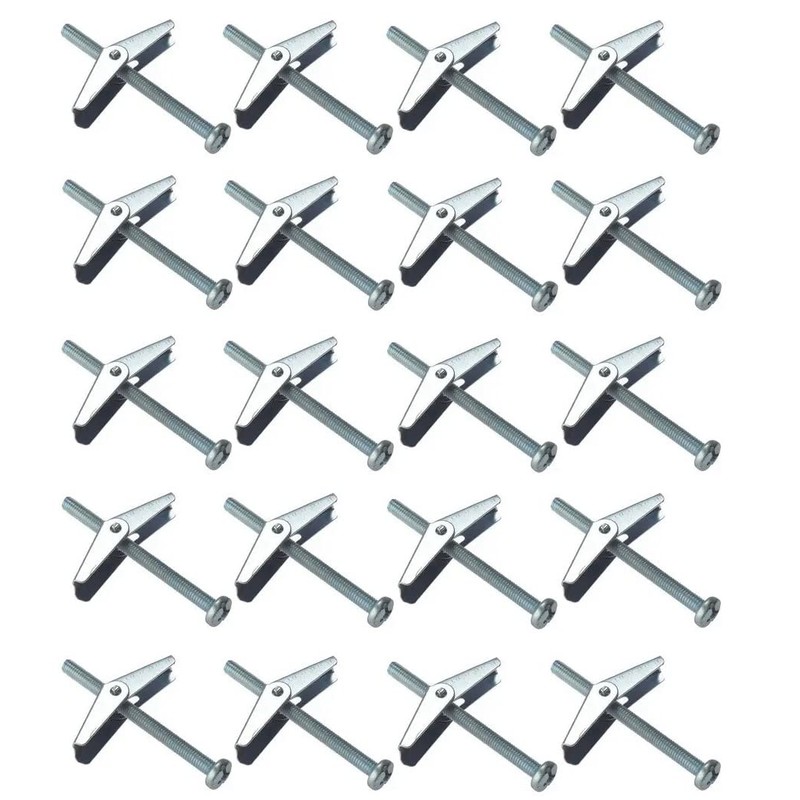 TERF® M5 X 75mm Wing Spring Toggle Bolt With Machine Screw for Plasterboard Hollow Wall and Door Fixings - Pack of 20