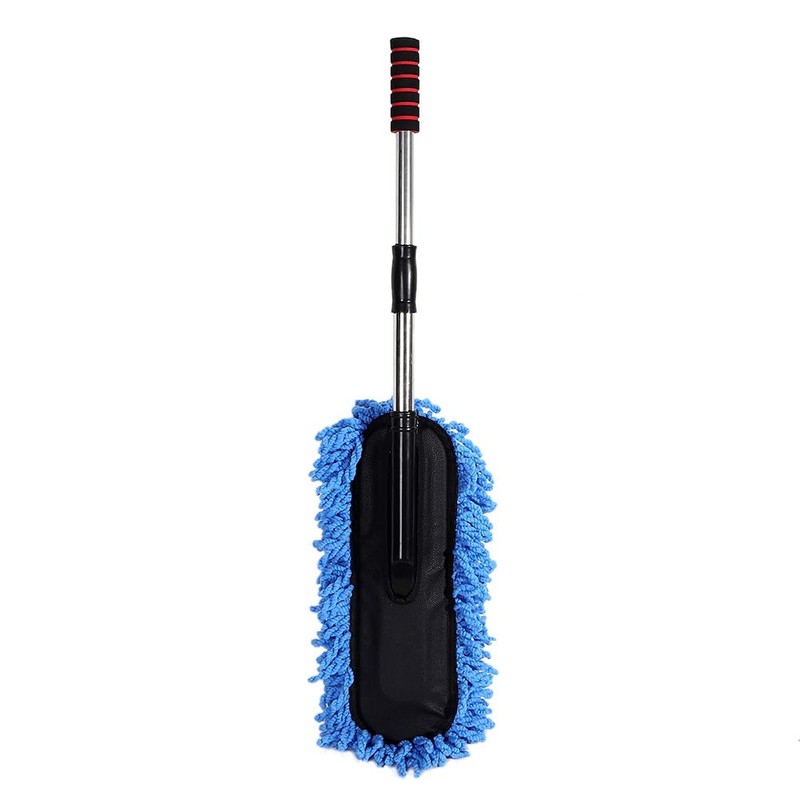 Terisass Car Duster Mango retráctil de acero inoxidable Cepillo de limpieza del vehículo Kit de plumero Lavable Automóvil Herramienta de arrastre de polvo de ventana extensible Universal(Azul)