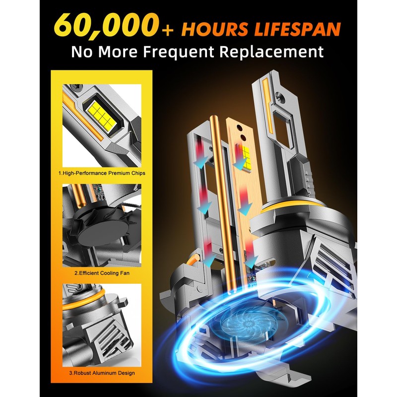 - 【900% BREAKTHROUGH BRIGHTNESS】Upgrade your driving experience with our high-power light bulbs, featuring 12 high-power chips per light and an impressive 40000LM brightness per set. With the latest Z10 technology, these headlights provide reliable and efficient illumination for optimal nighttime driving.