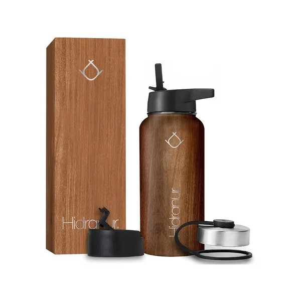 [ACERO ELEGANTE Y RESISTENTE] La botella de agua está fabricada con fuerte acero inoxidable 304 resistente a la corrosión y el polvo, y cada una de sus tapas contiene un anillo de silicón hermético completamente libre de BPA, la combinación ideal para una botella duradera, portátil y ultra elegante.