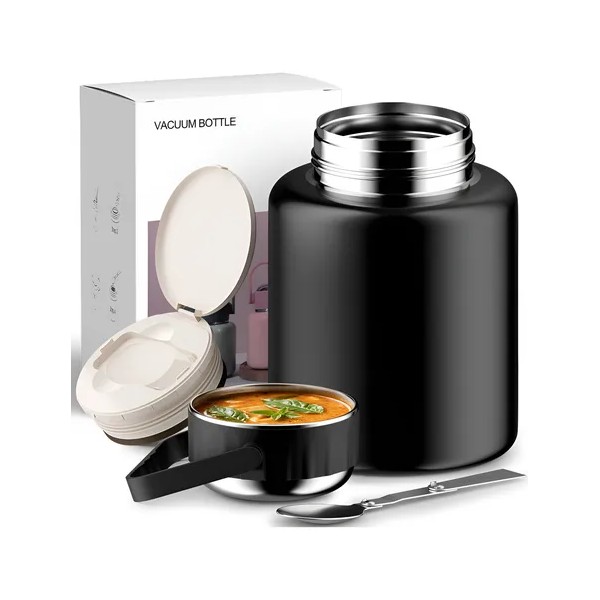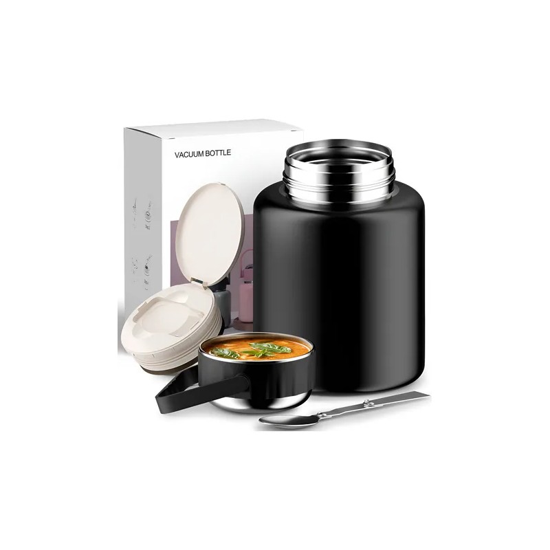 1. Fiambrera de acero inoxidable con aislamiento al vacío que mantiene la comida caliente de 8 a 12 horas.