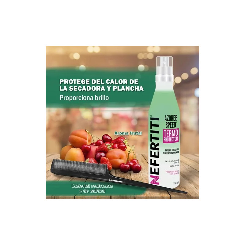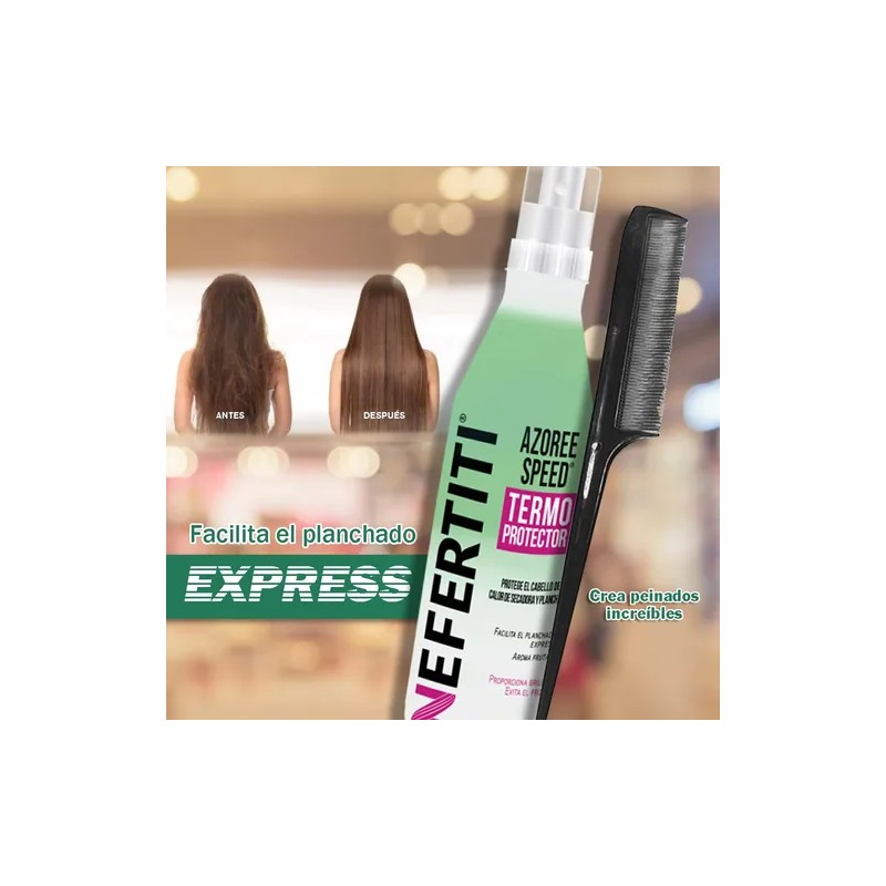 El Termo protector Azoree Speed es un spray bifásico que crea una barrera protectora entre tu cabello y las herramientas térmicas, evitando el daño, la resequedad y el frizz. Te ayuda a planchar tu cabello más rápido y fácil, dejándolo sedoso, brillante y con un delicioso aroma.