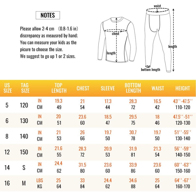 - Comfortable and Well Made: The baselayer suits will give your kids a snug feel. These long sleeve sets are durable and won't tear or rip easily. They can still in great shape after repeted machine wash.