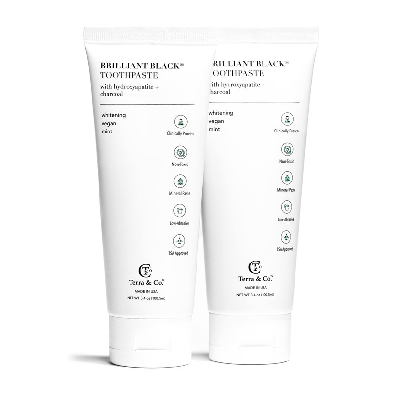 We know you're going to LOVE our newly reformulated Brilliant Black Toothpaste so much, we're bundling it together so that you can SAVE! Introducing our new high-grade formulation toothpaste made with a proprietary blend of clinically proven ingredients like the latest advancement in the oral care industry; biocompatible and non-toxic mineral Hydroxyapatite. Our ultra-cleansing nanoparticle-free 'fluoride alternative' toothpaste is designed to aid in sensitivity, tooth remineralization, and cavity prevention - all while whitening teeth naturally by sealing the pores of the surface of the enamel