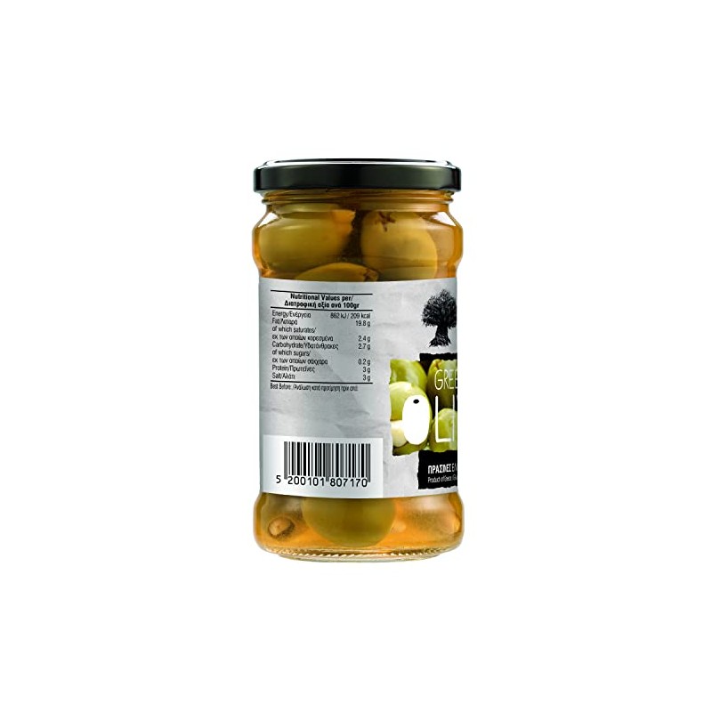Green "Halkidiki" olives are grown in the region of northern Greece. The deep blue of the Aegean, the bright sun and the fertile Greek land has these impressive and tasteful table olives.
