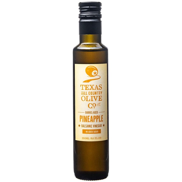 - PINEAPPLE INFUSED BALSAMIC VINEGAR: Our pineapple infused balsamic vinegar offers a tropical and sweet, yet tart flavor profile with a BIG fruity pineapple pop that is perfect for adding depth and complexity to any dish. It really POPS! We hand blend this flavored balsamic by starting with our signature traditional balsamic vinegar Di Modena Italy, then flavor it to our exact specifications right here in our facility in Texas. (8.5 oz)