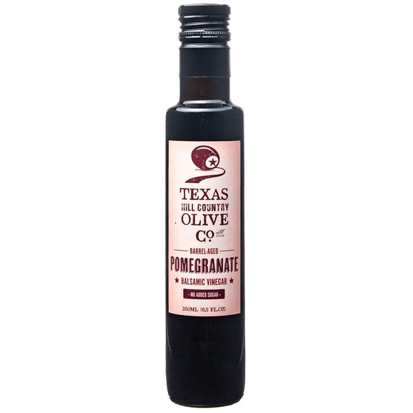 Pomegranate Balsamic Vinegar - Gourmet Barrel Aged Infused Balsamic Vinegar - Great for Dressing Dipping Glazing - No Artificial Flavors or Added Sugar - Made in Texas (8.5 oz)