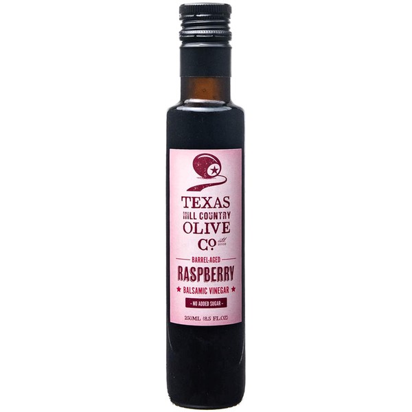 Raspberry Balsamic Vinegar - Gourmet Barrel Aged Infused Balsamic Vinegar - Great for Dressing Dipping Glazing - No Artificial Flavors or Added Sugar - Made in Texas (8.5 oz)